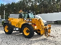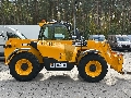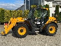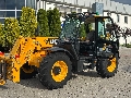 Trzy tryby sterownia maszyną – przednia oś skrętna, obie osie skrętne, tryb kraba. Podpory przednie sterowane niezależnie, zaczep przyczepy, pełne oświetlenie drogowe i robocze, karetka Q-Fit + widły, opony JCB SITEMASTER 15.5/60 R24.