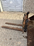 Fin og velkørende maskine med skovl og pallegafler.