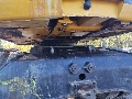 Läcker lite hydraulolja på slangen som går till gripklon där fästet är av.