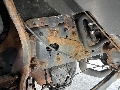 Manuel gearkasse 8 trin med split - fuld luftaffjedring - koblings-, og bremsepedal samt speedometer og lufttryksur i højre side til øvelseskørsel.