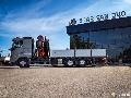 first drive axle 13 tons, second hydraulically steered axle 10 tons, • Technical weight of the set 50000 kg • Frame reinforced along the entire length (inner insert 5mm) • D13 500kM Euro 6 phase E engine, • VEB+ engine brake, • I-shift automatic gearbox, one crawler gear, • Rear axle without hub reduction ratio 2.64 • Rear coupling fi 40mm Rockinger, • Wheelbase 4900mm, • FH sleeper cab with standard height, • Gray color silver gray, • Two benches, • Two heated air-suspension comfort seats 1+1, • Webasto dry 2 kW, refrigerator in the cabin, • Leather multi-function steering wheel, • Rich set of instruments, • Reversing camera and blind spot camera with additional multimedia display, • EC 4.0 tachograph • Preparation for CB and FMS communication, • 6 LED work lamps, • Front and rear main LED lamps, • Rooster warning lamps on the roof, • Central locking with remote control, • Axle load indicator, • Front collision warning system with electronic brake, 2. Fassi F545RA.2.25 crane mounted behind the cabin • 5 hydraulic arms • 5/6 function • Unlimited 360 degree rotation • Support legs rotated 180 degrees in 7790 mm spacing • Additional support legs in 4984 mm spacing • Radio control with Start/Stop control and engine speed control • FSC H control system, which controls stability and manages lifting functions depending on the support spacing • LS variable displacement hydraulic pump, • Crane adapted to mount the boom • Winch preparation
