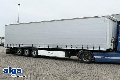 Pritsche- Plane- Spriegelaufbau mit seitl. Schiebeplanen, Schiebe- Verdeck, Stahl-Containertüren mit Drehstangenverschlüssen, Siebdruckboden, zwischen den Längsträgern und Außenrahmen verlegt, durchgehende Zurrlochung im Außenrahmen, ABS, EBS, KRONE Achse(n), Scheibenbremsanlage, Luftfederung mit Hebe- Senkvorrichtung, Liftachse, Palettenkasten, Staukasten, Ladungssicherungszertifikat, Fahrzeug kann mit Werbung beklebt und/oder beschriftet sein