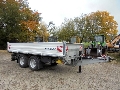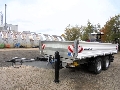 Tandem low loader - tipper. GVW 14.400 kg, payload 10.720 kg. Steel 3-side-tipper, approx. 5.000 x 2.420 x 600 mm, 12 lashing points, steel side walls swinging and foldable with central locking, support springs left and right. Loading height approx. 1.070 mm. 2 aluminium ramps 10 to underneath tipper. Tool box. Gigant axles, steel-suspension, ABS (anti-lock brakes), tyres 385-55R19.5. 40 mm towing eye, drawbar heightadjustable. 2-lines air, 1-line hydraulics, 24 V. Undercarriage and dump body galvanised, side panels and tailboard RAL 9016 - white. Excellent condition.