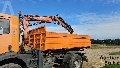 Three-sided tipper truck with crane in working condition. Not used for a month. Does not turn off with key, need to pull gas pedal.